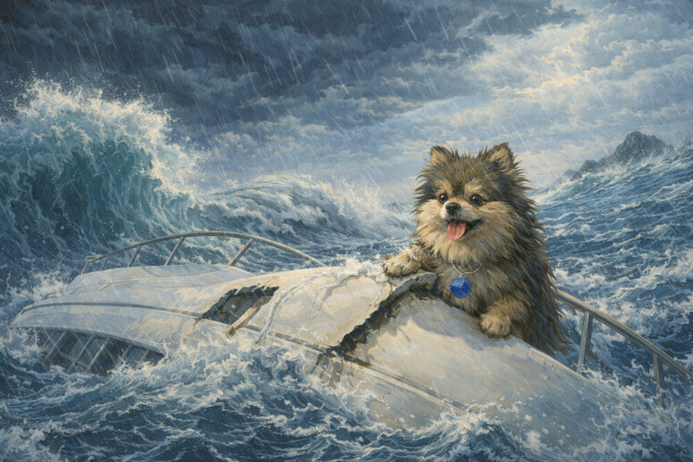 船に捕まろうと、もがき続けたが、海深くに飲まれていった。